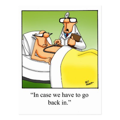 Enjoy spreading the laughter with this hilarious get well postcard by artist Bill Abbott. Bill Abbott's cartoon "Spectickles" the internationally syndicated comic has also appeared in Hallmark U.K. Reader's Digest Saturday Evening Post and other fine magazines and newspapers. myDoctorNurse