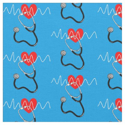 Ad: Heart Beat Line Stethoscope Medical Symbols Fabric