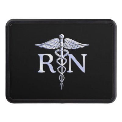 Ad: Registered Nurse RN Silver Caduceus Snakes Black Tow Hitch Cover